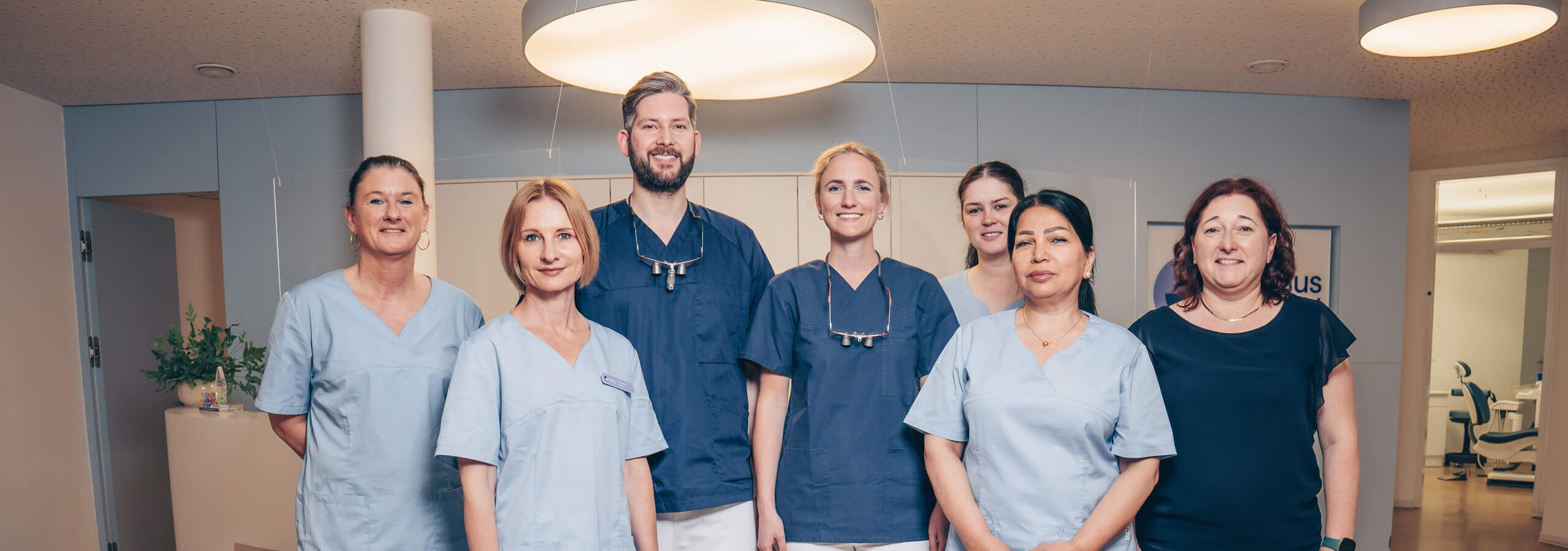 Wir legen großen Wert auf ein familiäres, nahbares Miteinander – sowohl im Team als auch im Kontakt mit unseren Patient:innen. Viele Gesichter werden Sie bei Ihren Terminen immer wieder sehen: an der Rezeption, im Behandlungszimmer, bei der Prophylaxe.